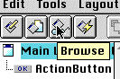 Now to look the methods in SimpleExample. You can use a browser to do this. The GUI Painter Tool provides short cuts to view methods and the class. In the left pane the GUI Painter Tool select the top list item which is labeled "Main Window: Unlabeled". Once that is selected click on the "Browse" icon. You will get a browser on your class.