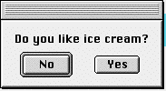 | answer | answer := Dialog confirm: 'Do you like ice cream?'.