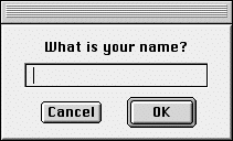 Dialog request: 'What is your name?' initialAnswer: 'Smith' Dialog request: 'What is your name?' initialAnswer: 'Smith' onCancel: ['Jones']