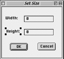 Now run the example. When you click on the "Set size" button, the dialog will appear. Here is the entire source code for the class (minus the interface specs) in case you have problems.